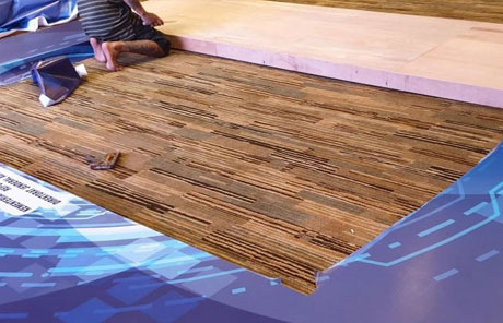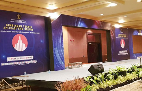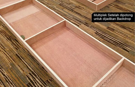 Setelah dipotong sesuai ukuran yang diminta, selanjutnya ditempelkan Flexi, atau biasa disebut banner vinyl sesuai ukuran. Setelah terpasang, baru backdrop diberdirikan dan diletakkan ditempat yang dibutuhkan